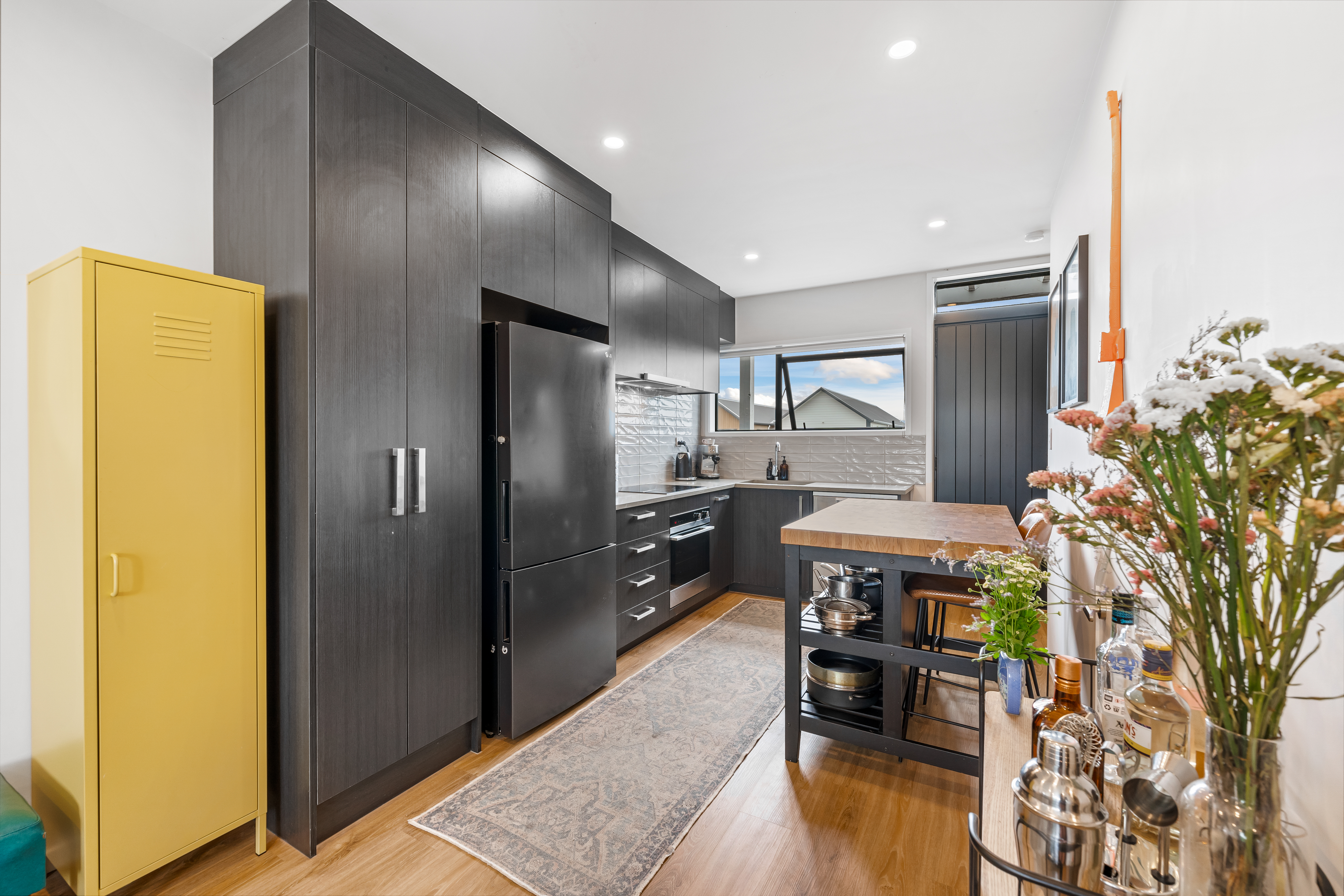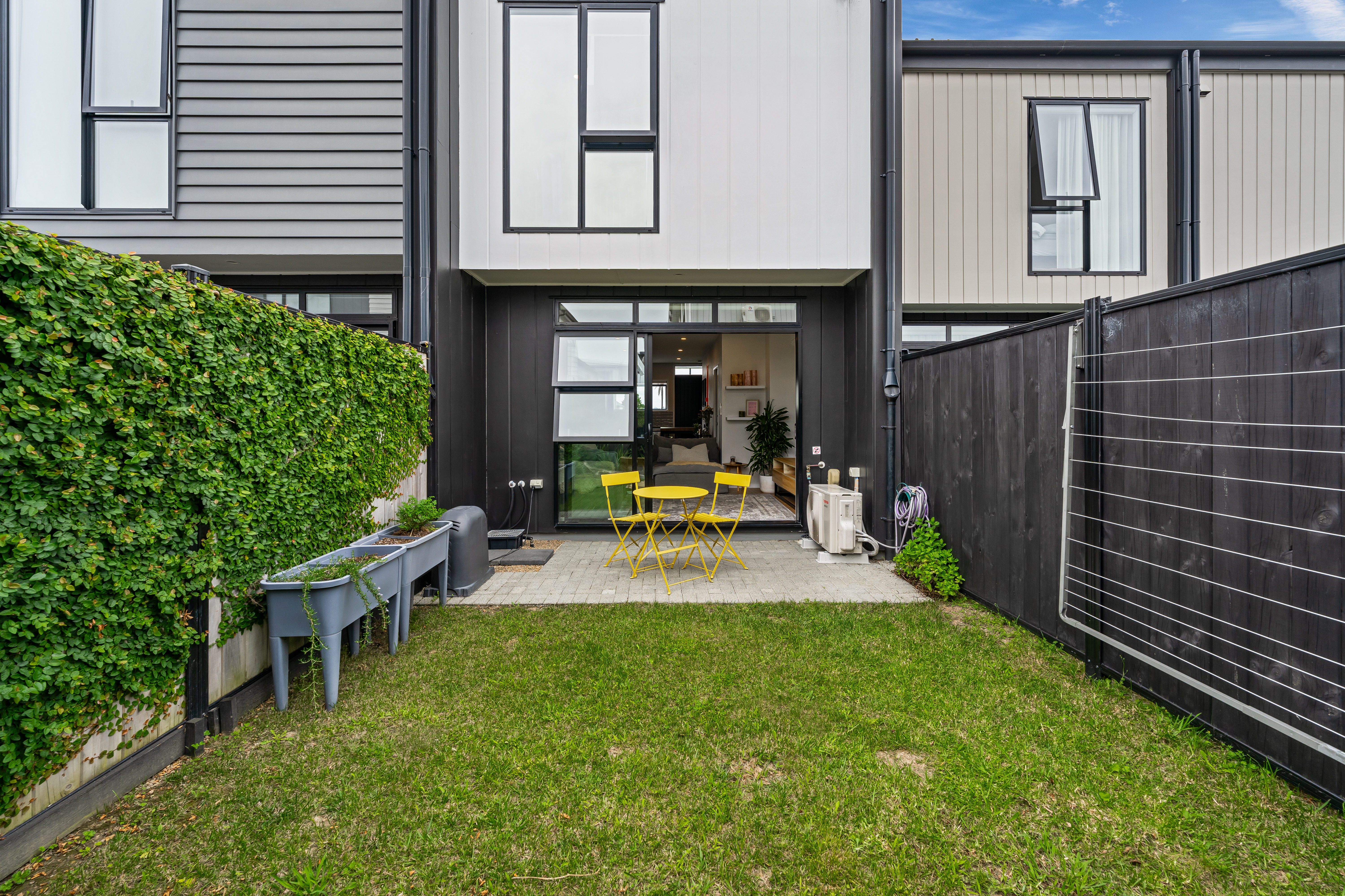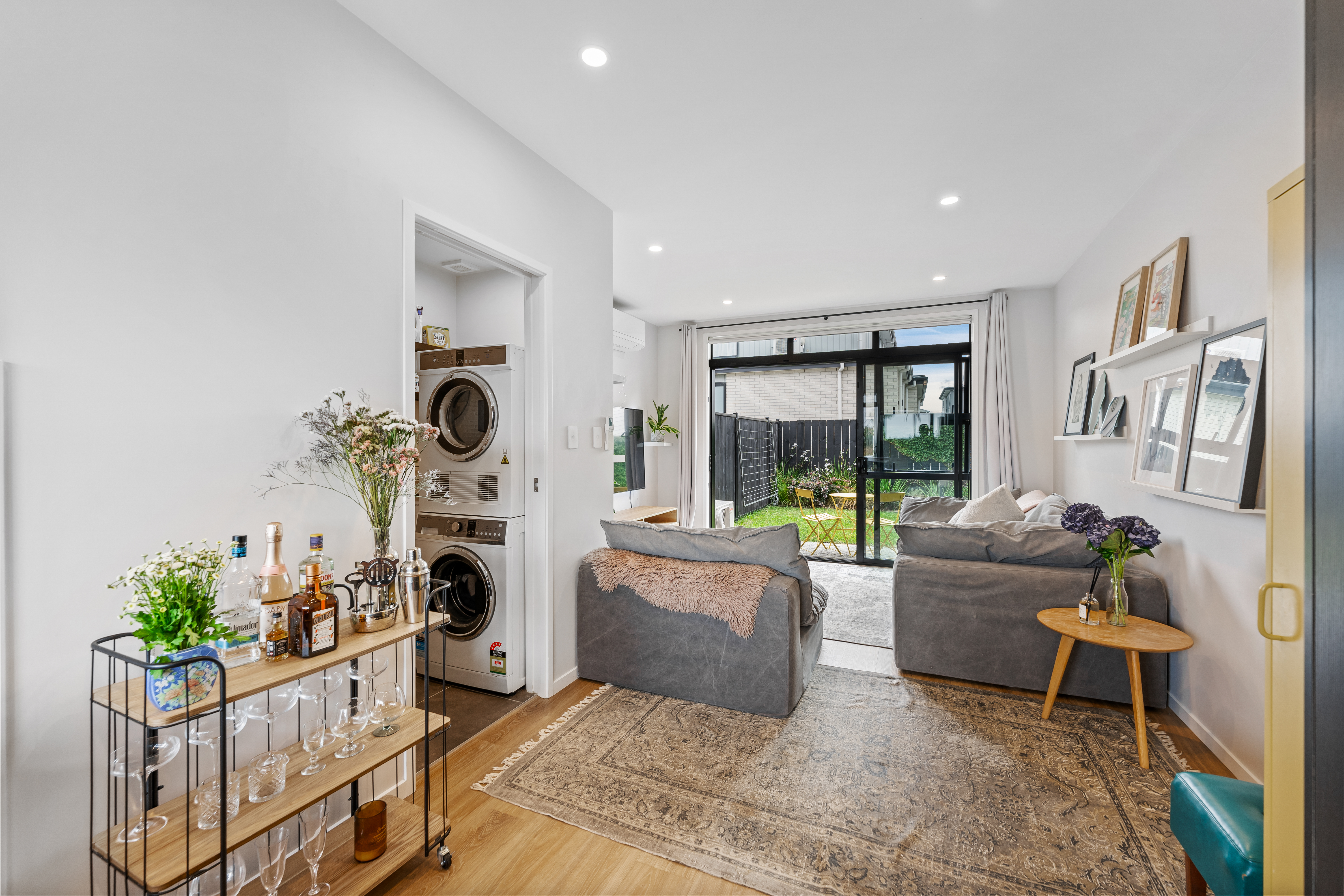 The smartly tiled bathroom with a bathtub acts as a semi-ensuite to the master. The laundry is integrated with a powder room, there is handy organised storage, a heat pump, and a single car park just outside the front door.